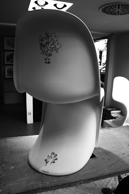 Earlier this year I doodled on these two beautiful Vitra Panton design chairs. At Studio Van 't Wout in The Hague. Live during the "Designkwartier". Tobias Becker Hoff 2017©